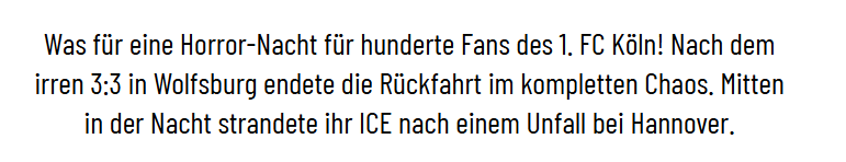 Wie ihr unserer kleinen Geschichtsstunde zum VfL Wolfsburg entnehmen könnt (auf der Plastik-Seite) ist der Laden unmittelbar nach dem Zweiten Weltkrieg gegründet worden und mithin nun 80 Jahre alt. Ausgerechnet im Spiel gegen unseren glorreichen 1. FC Köln feiert die ehemalige Kraft durch Freude Stadt dieses denkwürdige, aber wenige Menschen erfreuende Jubiläum – und unsere armen mitgereisten Fans mussten es über sich ergehen lassen.